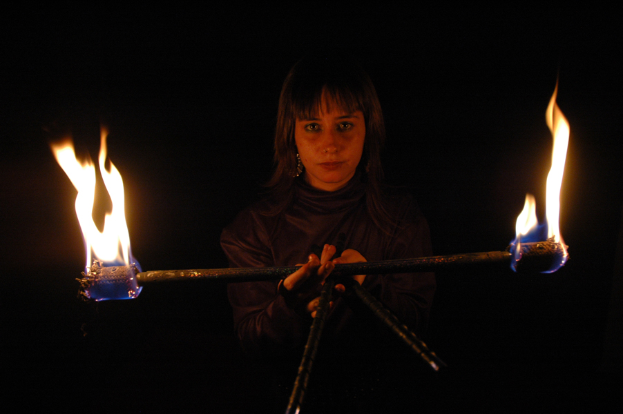 Representaremos la historia de los misterios del fuego y la luz, mediante cuentos, narraciones, música y malabares de fuego (mazas, cadenas, palo chino, diávolo) y luz (bolas, mazas, cariocas), las acrobacias serán la línea de unión del espectáculo.