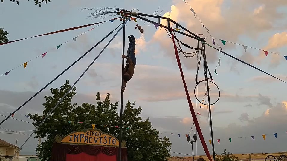 La esencia del circo en estado puro, espectaculares e increíbles números de trapecio, telas aéreas, mástil chino, y asombrosos saltos mortales en el suelo de nuestro impresionante acróbata, todo ello unido por un divertidísimo personaje que hará las presentaciones de cada uno de estos grandiosos números de circo, en un marco incomparable ya que reproduciremos un circo clásico con su cartel de madera, sus telones de terciopelo, su pista de circo y majestuosa estructura de 6 metros de alta y cuatro de ancha, donde se colgaran todos los elementos aéreos como el trapecio, telas y mástil.